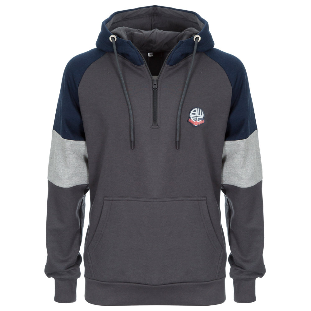 Charcoal, navy and marl overhead zip hoodie with silicon crest.